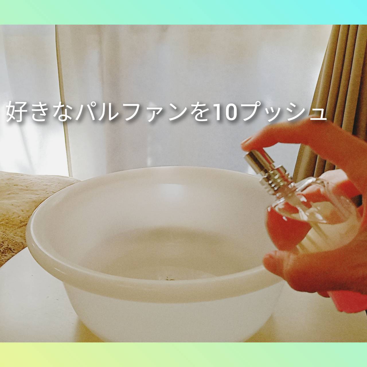 〇洗面器に熱湯を3~4センチ入れて、お好きなパルファンを30プッシュ